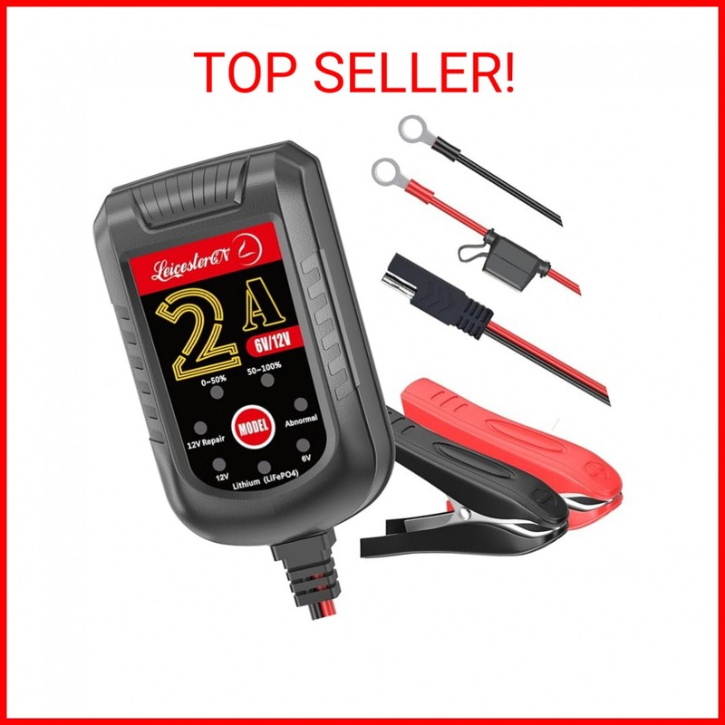 LEICESTERCN 2A Trickle Battery Charger Automatic Maintainer 6V 12V Smart Floa...