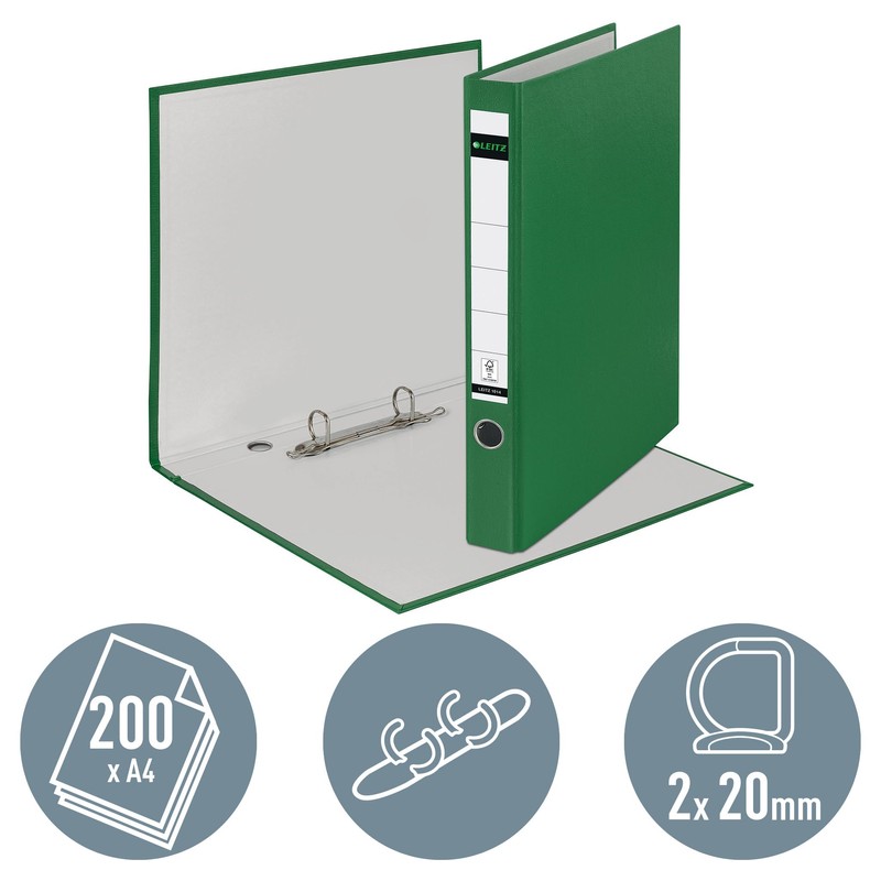 Leitz 10140055 Ring Binder A4 Polypropylene 2 Rings 35 mm Green