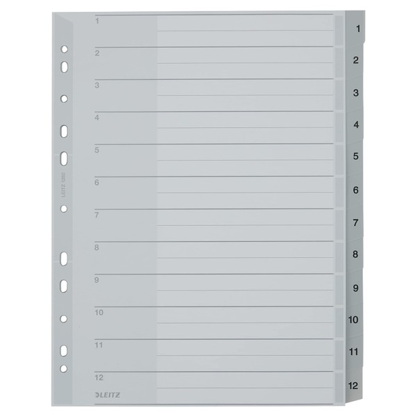 - Box contents: Leitz 12820000 index numbers 1-12 grey