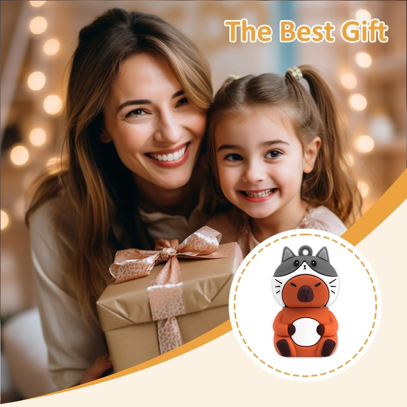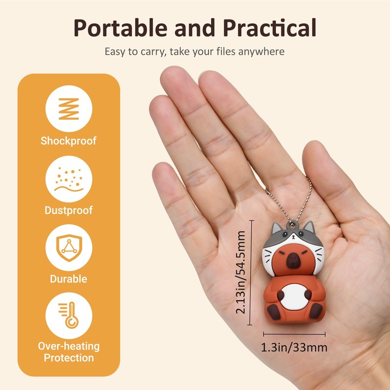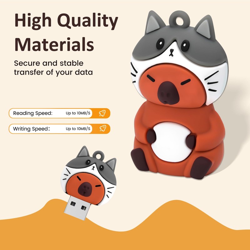 leizhan 64GB USB Flash Drive USB Memory Stick USB Pen Cute Capybara Design Memory Stick Suitable for Children Students Graduation Gift Souvenir - Kitten Hat