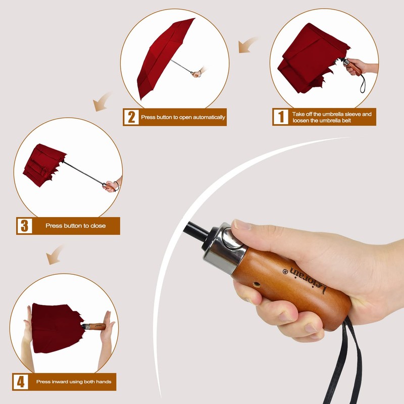 - AUTO OPEN AND CLOSE: The reliable push-button open and close mechanism operates quickly allowing you to open this auto umbrella in seconds in sudden rain, great for quick entry into a car, building, or tent.