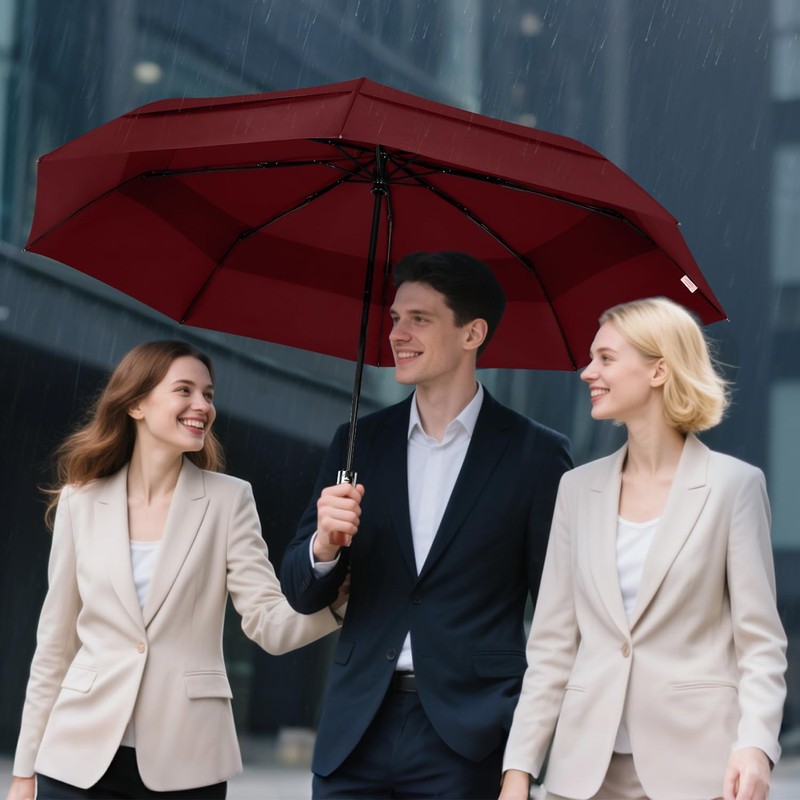 - WINDPROOF AND STRONG BUILD: This 54in large umbrella with its vented Double Canopy construction allows the wind to pass through the vents preventing it from flipping over or turning inside out. Moreover, our premium Fiberglass and stainless steel frame system cries out NO rust, NO breaking.
