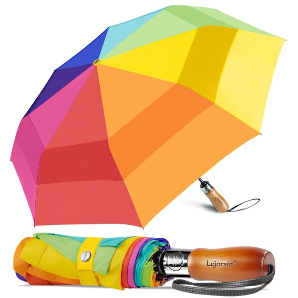 Lejorain Rainbow Windproof Automatic Umbrella - Golf Heavy Duty Large Double ...