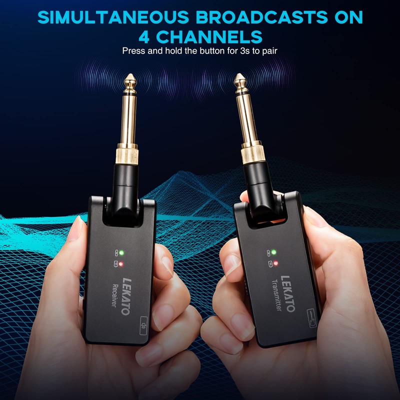 - With Charging Box: Different from other guitar wireless system,LEKATO WS- is equipped with a portable charging case, which can extra charge the devices twice and privide -hours battery life after fully charged.