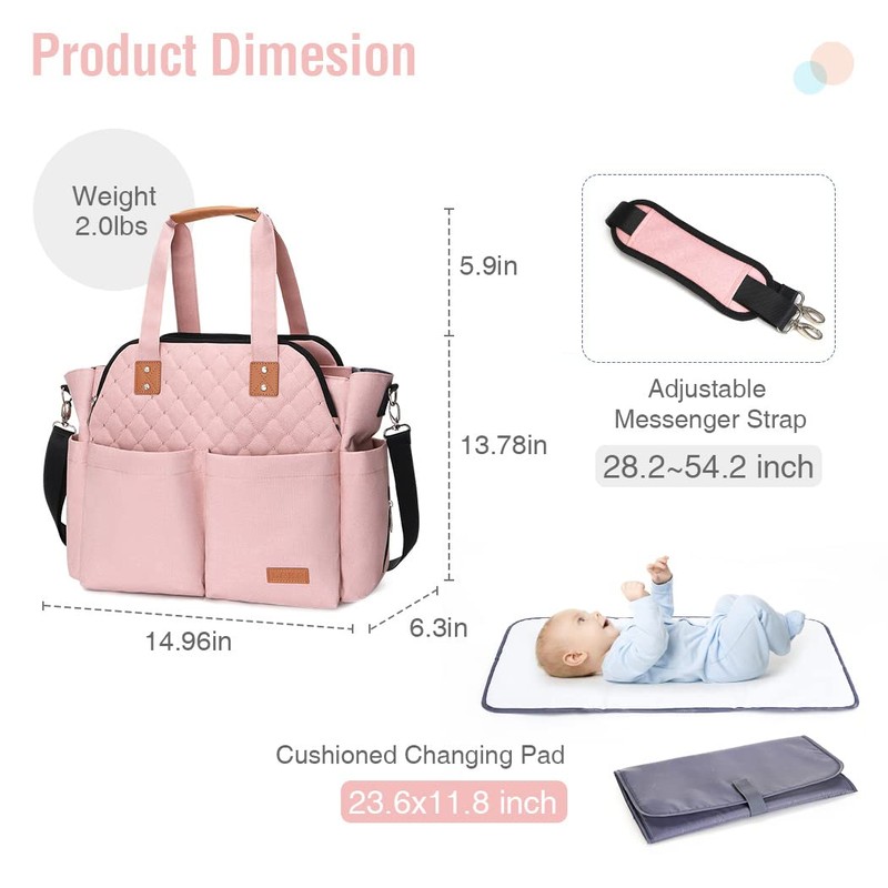 Lekebaby Diaper Bag Tote, Large Diaper Bags Waterproof,Large Mommy Bag for Hospital, Baby Bags for Mom Travel Diaper Tote Messenger Purse, Pink
