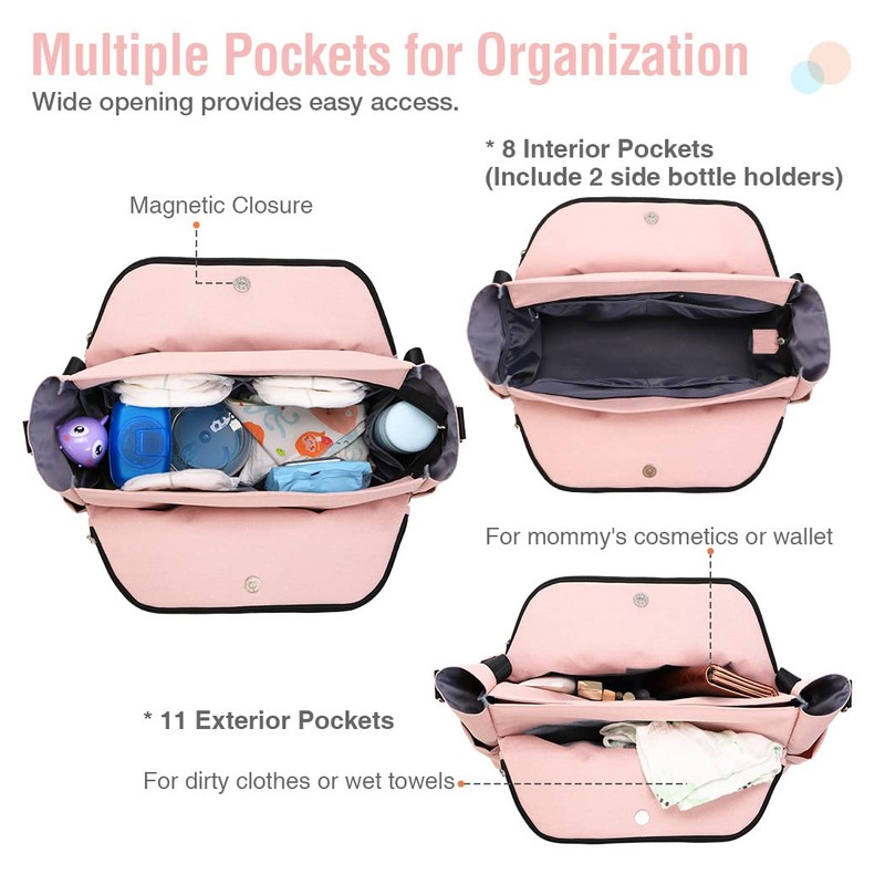 Adjustable & Removal Shoulder Strap: The diaper handbag will come with adjustable and removable shoulder straps. It can converts from a shoulder bag to a cross-body easily.
