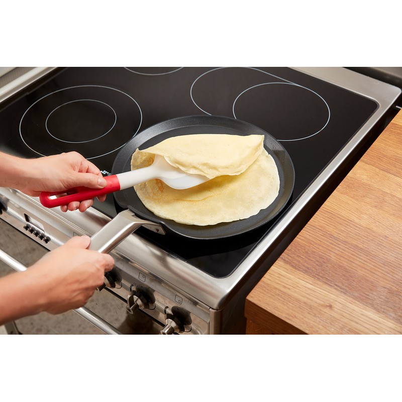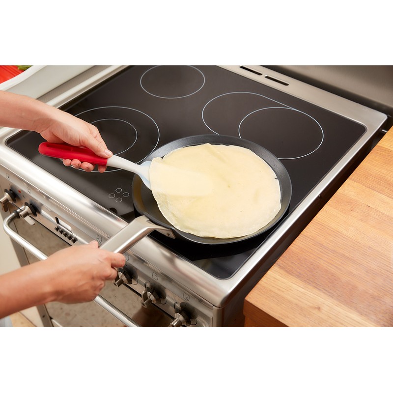 - Spatula for flipping: the spatula for flipping is ergonomic for more comfortable use and perfect for turning your crepes and pancakes without breaking them