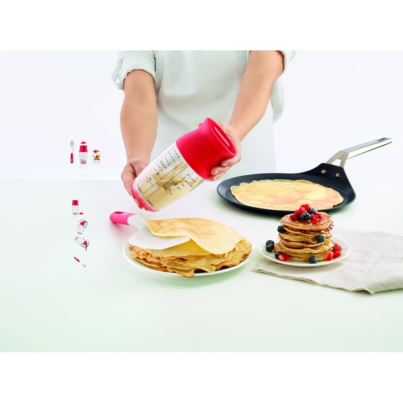 Lekue Crepe/Pancake Batter Kit Set includes Batter Shaker, Spatula & Recipe Booklet, Clear