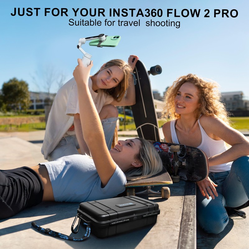 • Storage Capacity: 1x Insta360 flow 2 pro gimbal ,1x Magnetic Phone Clamp,Insta360 Flow 2 Pro Al Tracker,Flow 2 Pro Spotlight,Cable,and other Accessories.