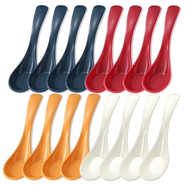 LELE LIFE 16Pcs Asian Soup Spoons, Chinese Japanese Soup Spoon for Ramen Pho Miso Dumpling Wonton Noodle Soba, Dishwasher Safe,4 Colors, LJ-195