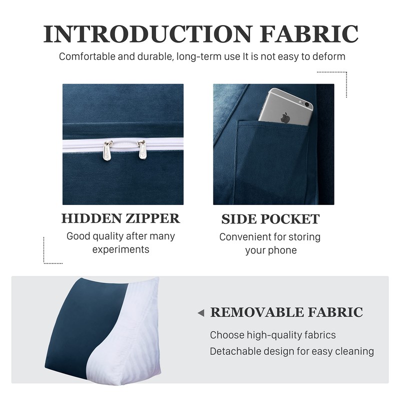 - Give You The Best User Experience: The headboard Wedge Pillow is designed to follow the natural curve of your back, providing optimal support for your upper body while relieving pressure on your back and shoulders. Featuring convenient side pockets on both ends, it's perfect for storing your book or phone within easy reach. With this reading pillow, enjoying a good book, watching TV, or simply relaxing in bed has never been more comfortable.