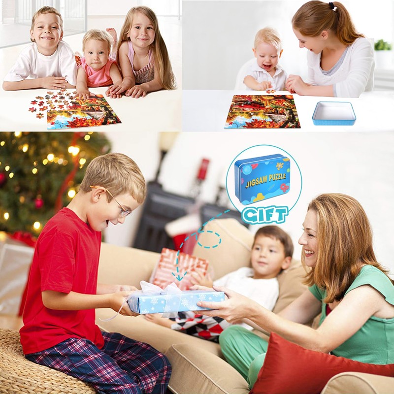 • Autumn Puzzles for Kids: Each package of Autumn Jigsaw Puzzles includes 100 puzzle pieces, a tin box, and a guide paper. The sturdy box is perfect for stacking and gift giving. Puzzles can be entertaining and fun for everyone! Helping children feel a sense of accomplishment in solving puzzles.