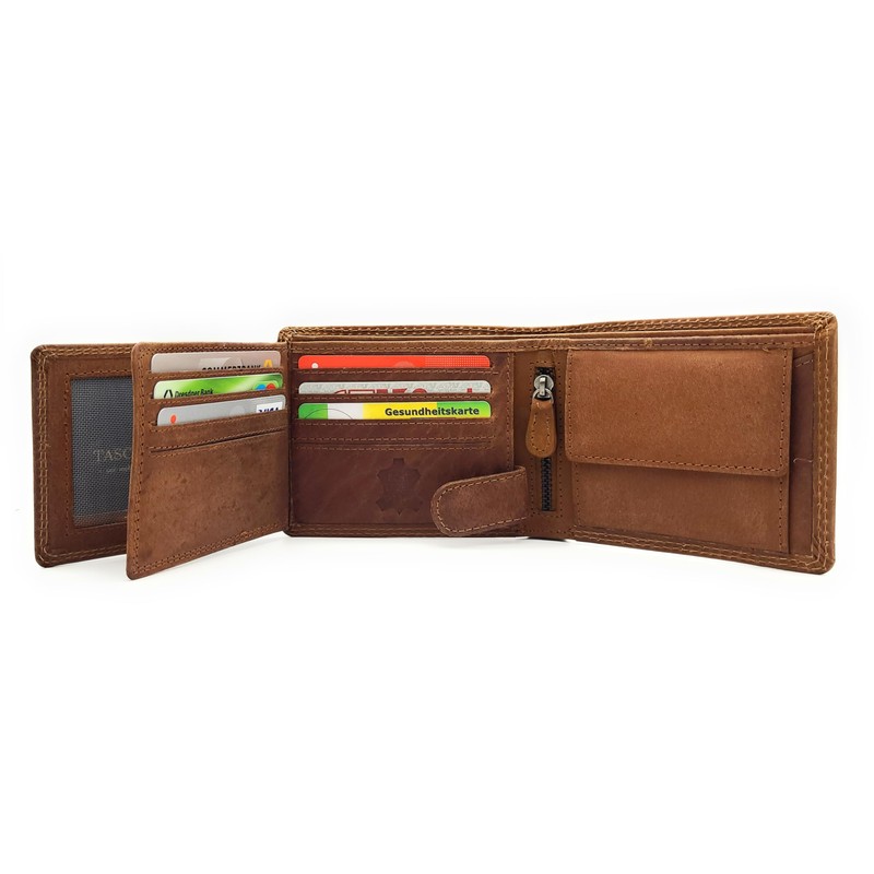 This wallet made of high-quality Hunter leather offers a successful combination of robustness and functionality. The embossing on the front gives the wallet a subtle, classic touch.