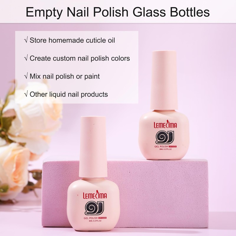 Lemecima 36 Pcs Empty Nail Polish Bottles with Brush Cap, 8ml Empty Glass Refillable Nail Polish Bottles