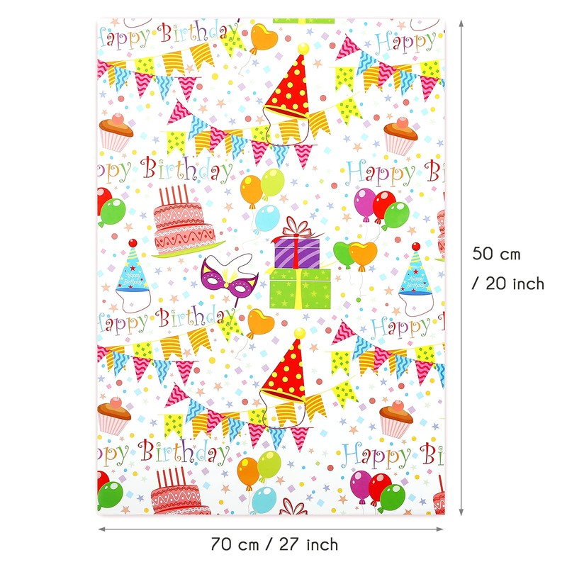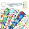 LEMESO 6 Papel Reutilizable de Regalo de Cumpleaños Papel de envolver para niño, Seis Especies de Cartoon
