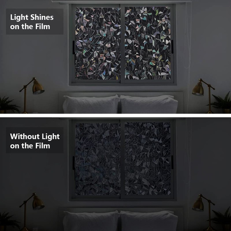 - 100% PRIVACY PROTECTION:This is a blackout window film,Privacy Level :★★★★★, blocks 100% of UV rays and provides two way privacy. Darker than curtains or blinds, minimize sun glare and make your room look like night. ,making it ideal for people who sleep during the day or sleep light at night.