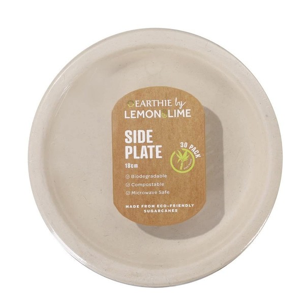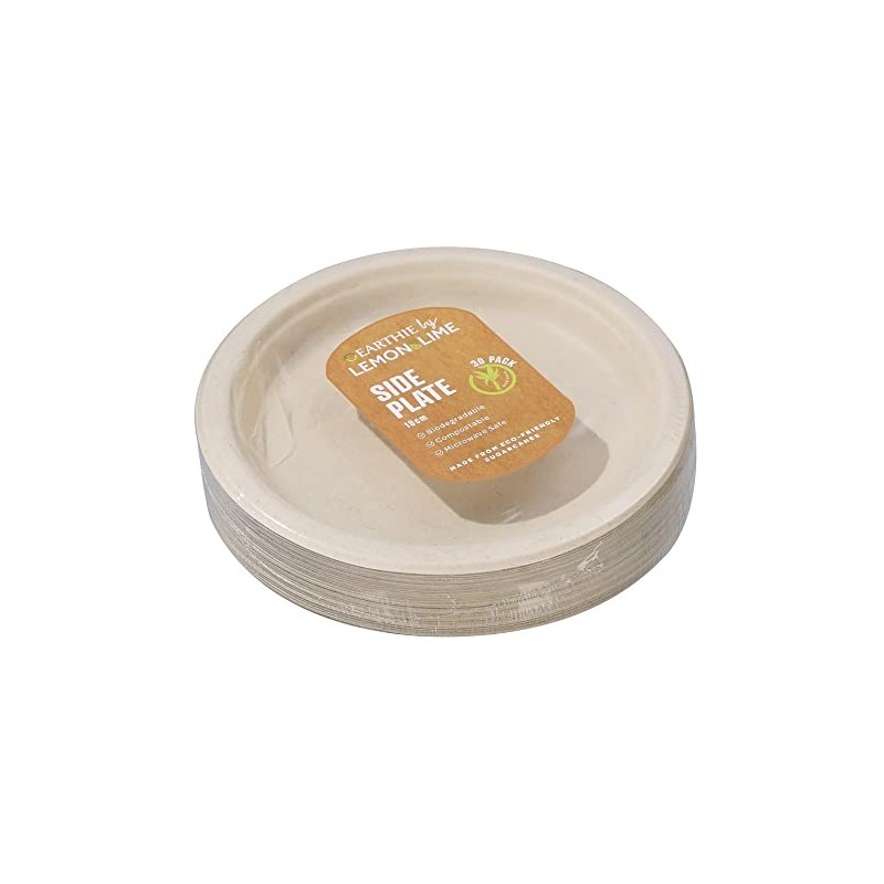 Lemon & Lime Eco Sugarcane Side Plates 30-Pieces, Natural, 18 cm Diameter