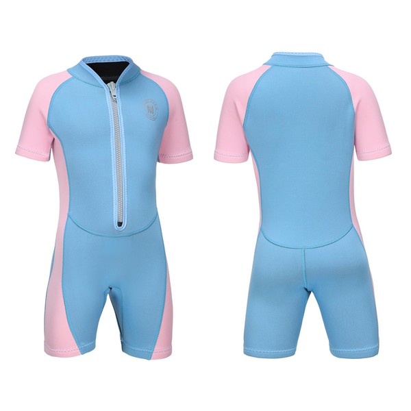 Lemorecn Wetsuits Kids Neoprene 2mm Front Zip Shorty Swim Suits (4022bluepink10)