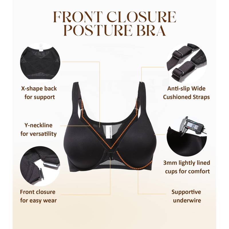 - Thoughtful Structure: Y-neckline pairs well with low-cut clothes, while the inverted V-shaped hem of this front close posture bra keeps your breasts in place. Crafted with breathable fabric and ergonomic support, this back smoothing posture correcting bra seamlessly blends comfort and functionality.