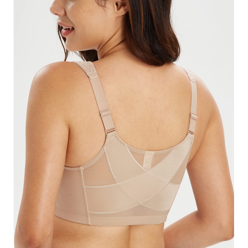 Lemorosy Full Coverage Front Closure Posture Bra Wirefree Unpadded Back Support Bra(Toffee, 46D)