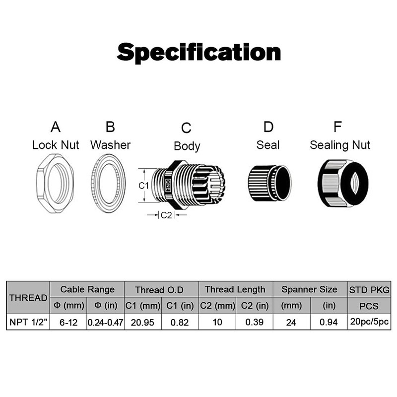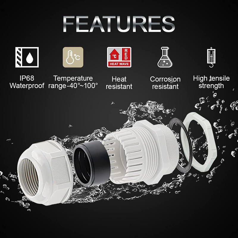 • Easy to install: Fits cable range 0.24in-0.47in(6-12mm); easily pass the cable through the gland then tighten the cap.