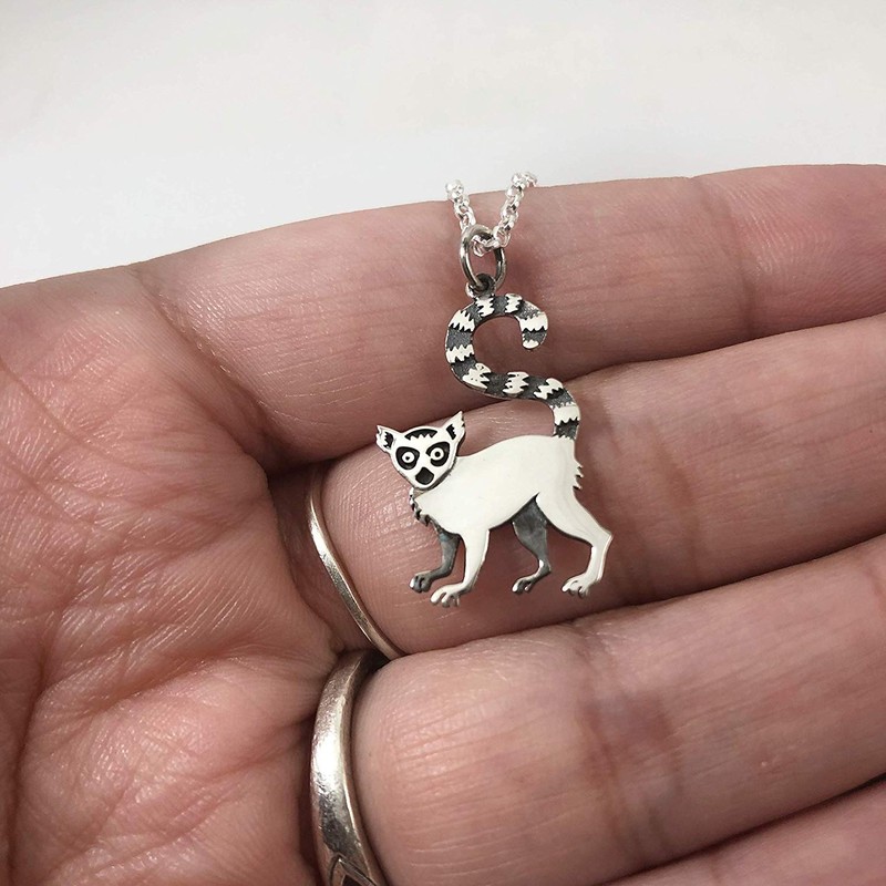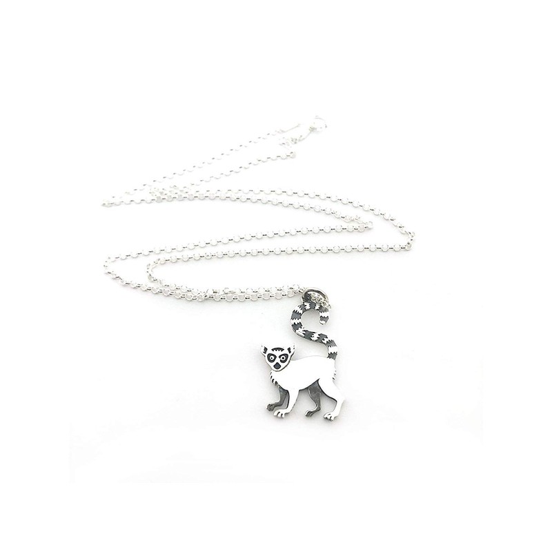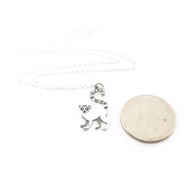 This dainty necklace is handcrafted featuring a detailed Sterling Silver Lemur Charm attached to an 18 inch Sterling Silver cable chain with clasp. Necklace comes on a beautiful insert card, printed on high quality 110lb card stock.