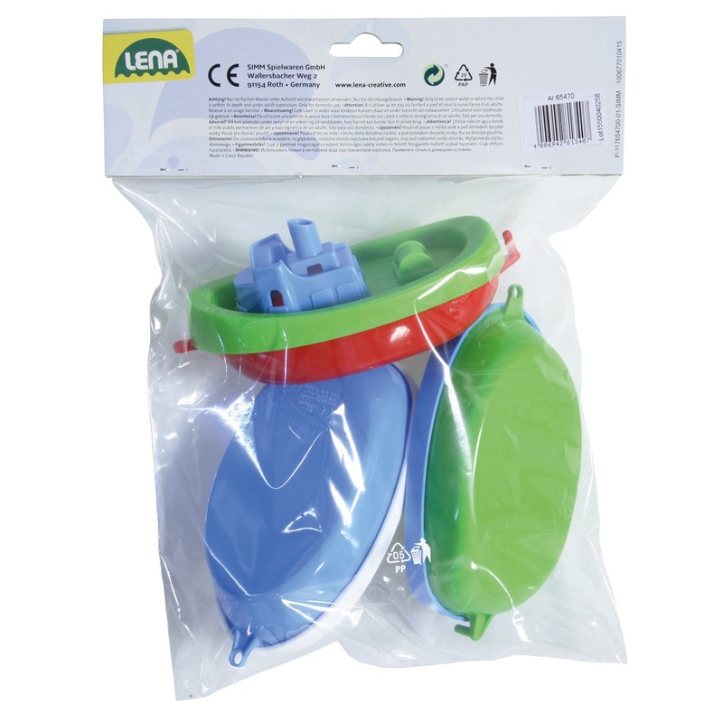 Lena Water Fun Boats, Set of 3 Plastic Bath Boats for Toddlers from 1 Year - 3 Floating Toy Boats with Trailer Hitch for Bathtub, Pool and Sandpit, 65470