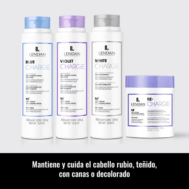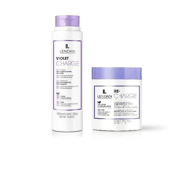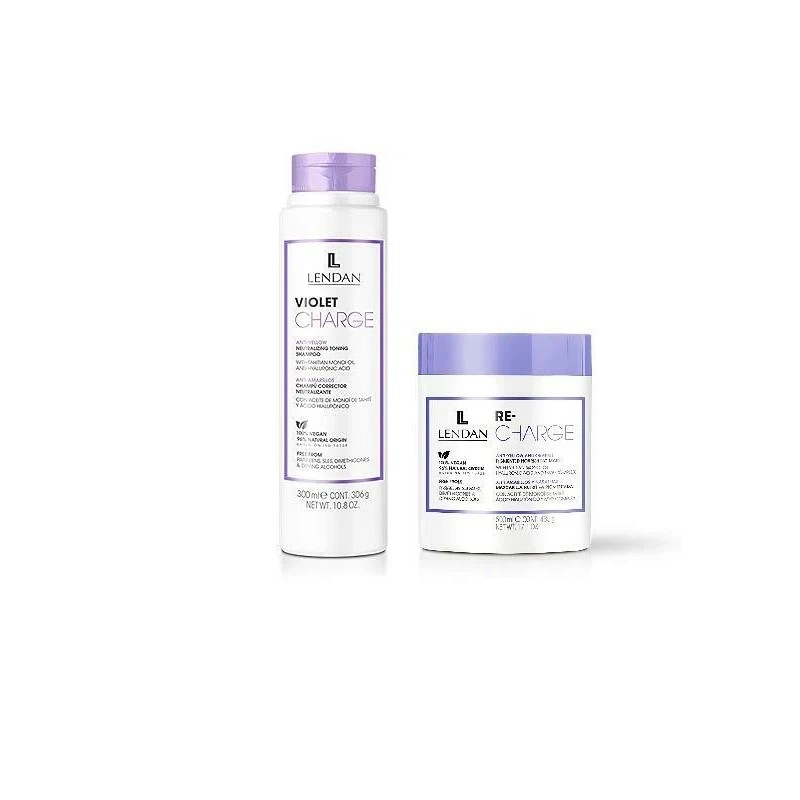 Lendan Anti-Yellow Kit with Violet Pigments, Violet Charge Shampoo 300ml + Re-Charge Mask 500ml includes: