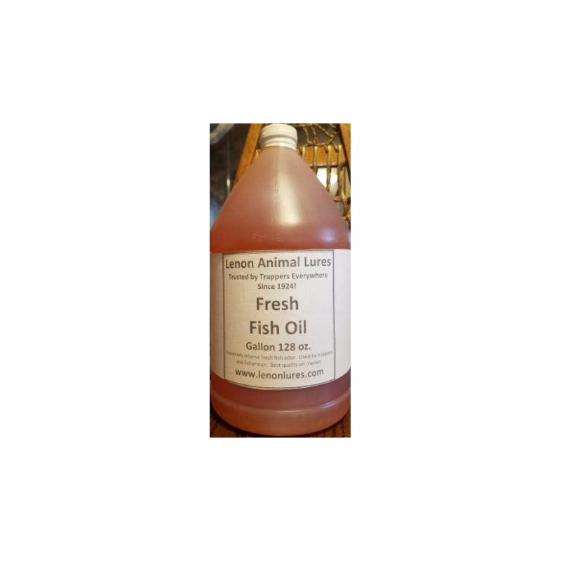 Lenon's Fresh Fish Oil Large Gallon Size A great attractant used as lure for raccoon, mink, otter and fox. Used directly at set same as you would use any call or food lure or as a trailing scent. Extremely intense fresh fish odor. Made Only by: John S Chagnon & Family, Michigan Lenon Animal Lures has been Serving Trappers Since 1924!