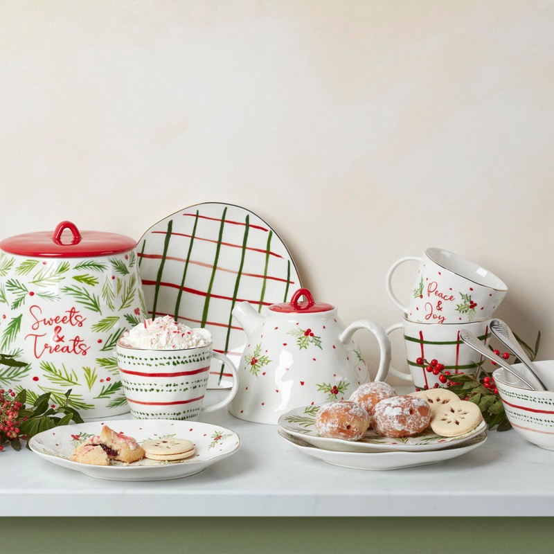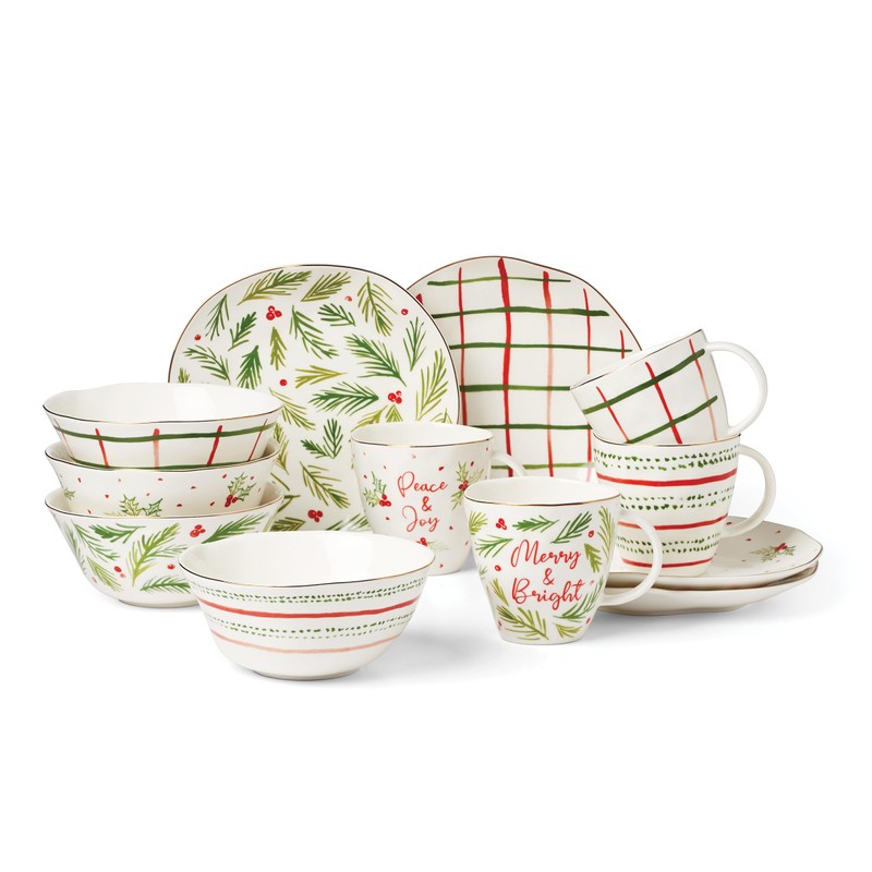 - Includes (4) dessert plates, (4) all-purpose bowsl, and (4) dessert mugs
