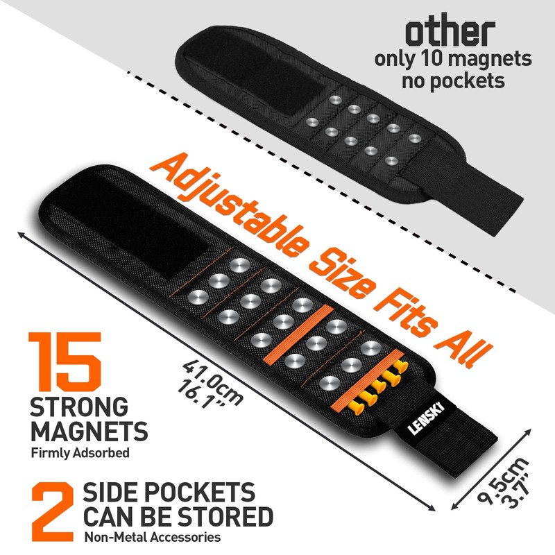• 🔧【White Elephant Gifts for Adults】-Lenski magnetic bracelet has a double velcro strap, adjusting it to different sizes for both men and women. the knitted filling net is used in the wrist contact area to keep our wrist ventilated and comfortable for work.