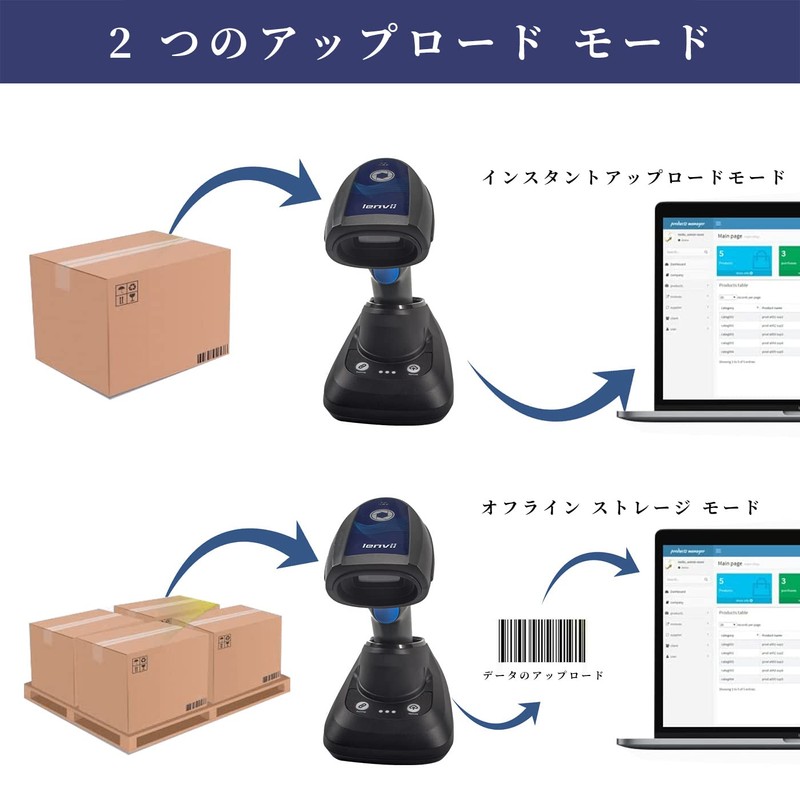 - 【Support Screen Scanning】Bluetooth barcode reader has advanced digital image collection function, you can read the barcode directly from the screen of your smartphone or laptop. With instant upload mode and offline storage mode, you can store up to 1.5 million barcode entries and use it very efficiently in a variety of environments