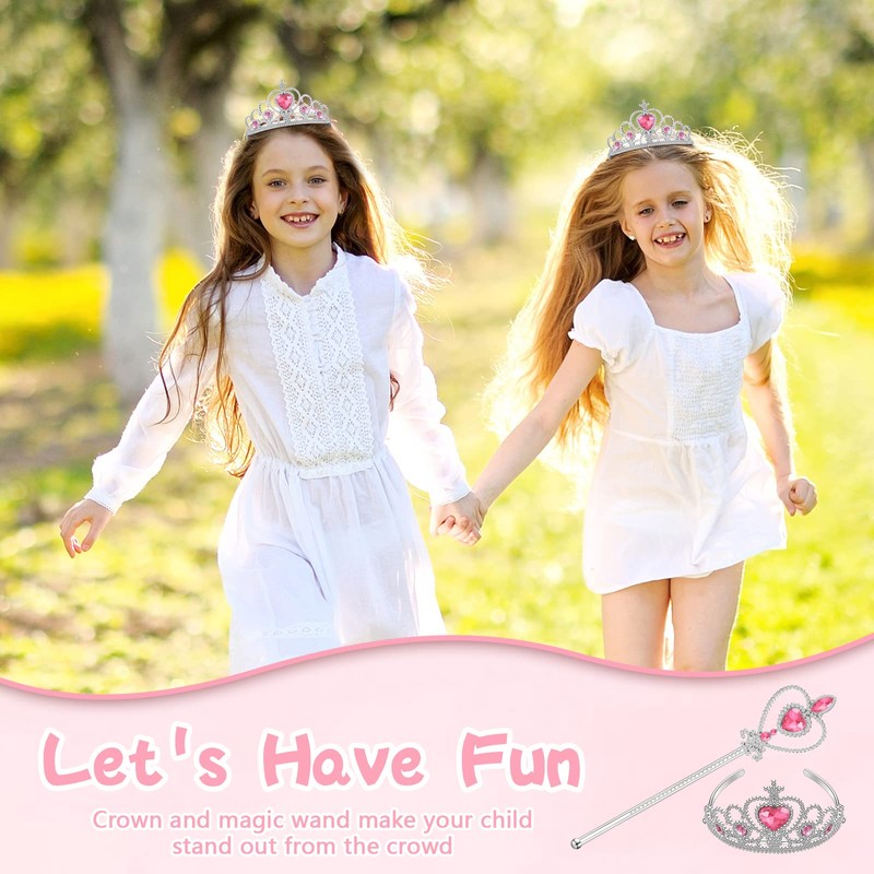 - Gift Idea: the princess wand and tiara set is beautiful and fascinating, the diamonds make it more eye catching and shiny, can be applied as wonderful gifts for little girls, students or siblings