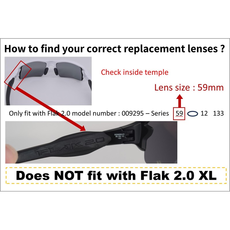 - ⚡100% guaranteed fit with Oakley Flak 2.0 Standard-Fit oo9295 frame (Lens size 59mm) : 1 pair of lenses ( Don't Fit : Asian-Fit )