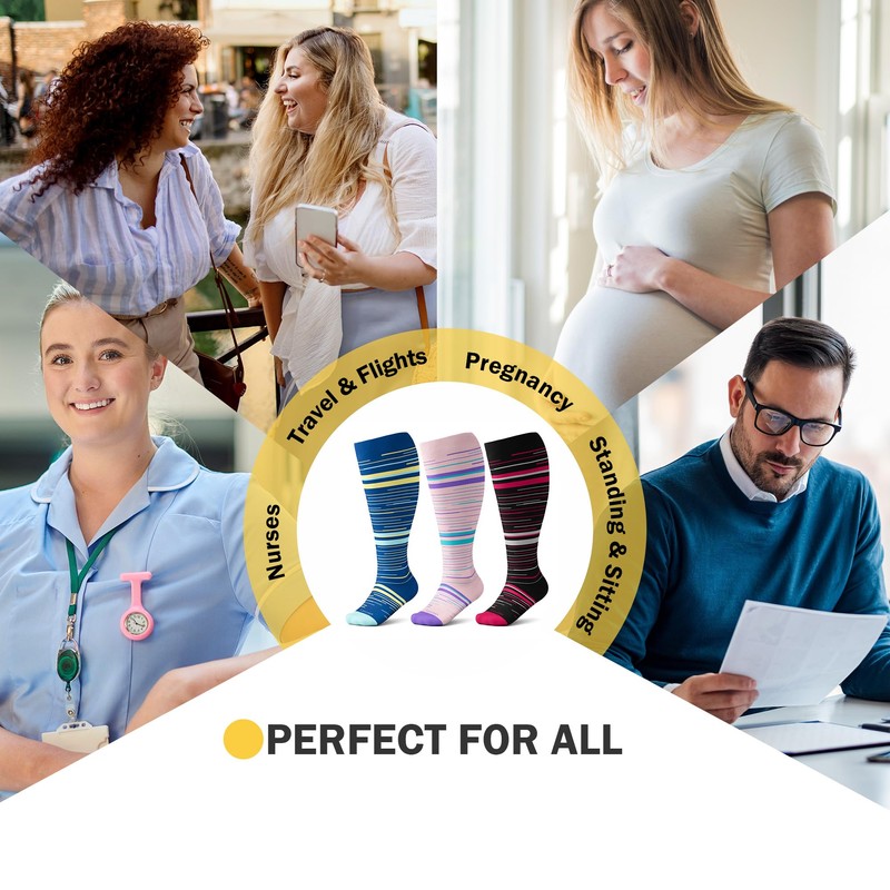 - Multi-Use Scenarios: These extra wide compression socks perfect for pregnant women, nurses, teachers, and shift workers, sitting&standing, long flights, traveling, after surgery recovery, sports, everyday wear or as a gift