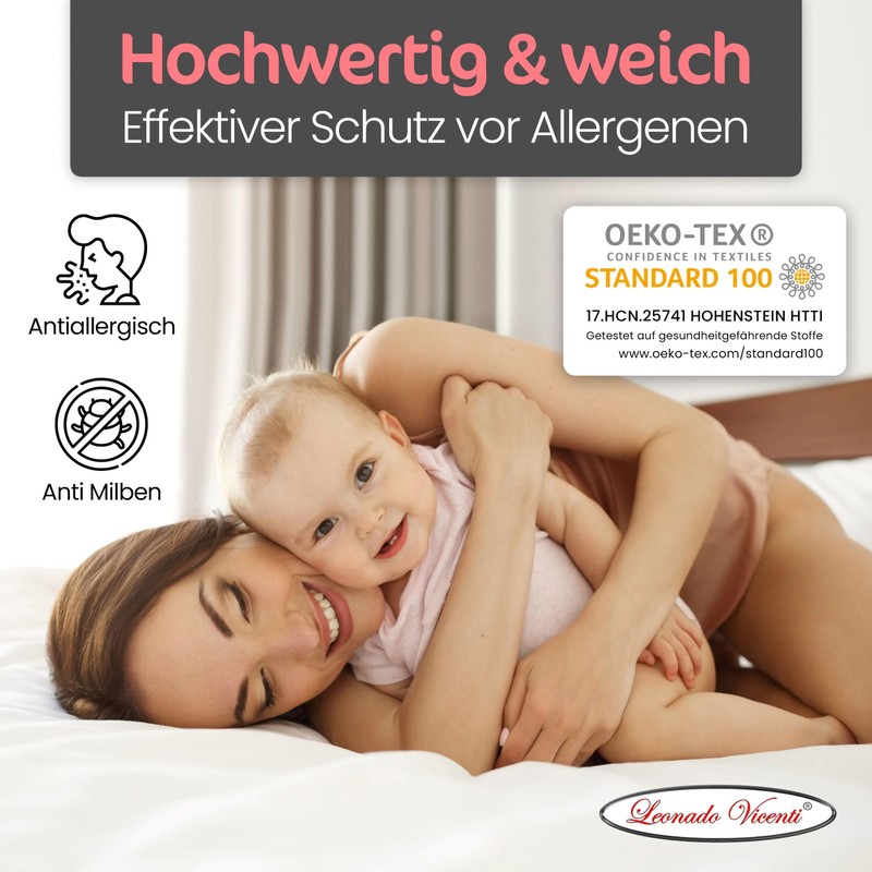 - Oeko-Tex certified: the mattress protector has been tested for harmful substances according to Standard 100 by Oeko-Tex (certificate number: 17.HCN.25741)