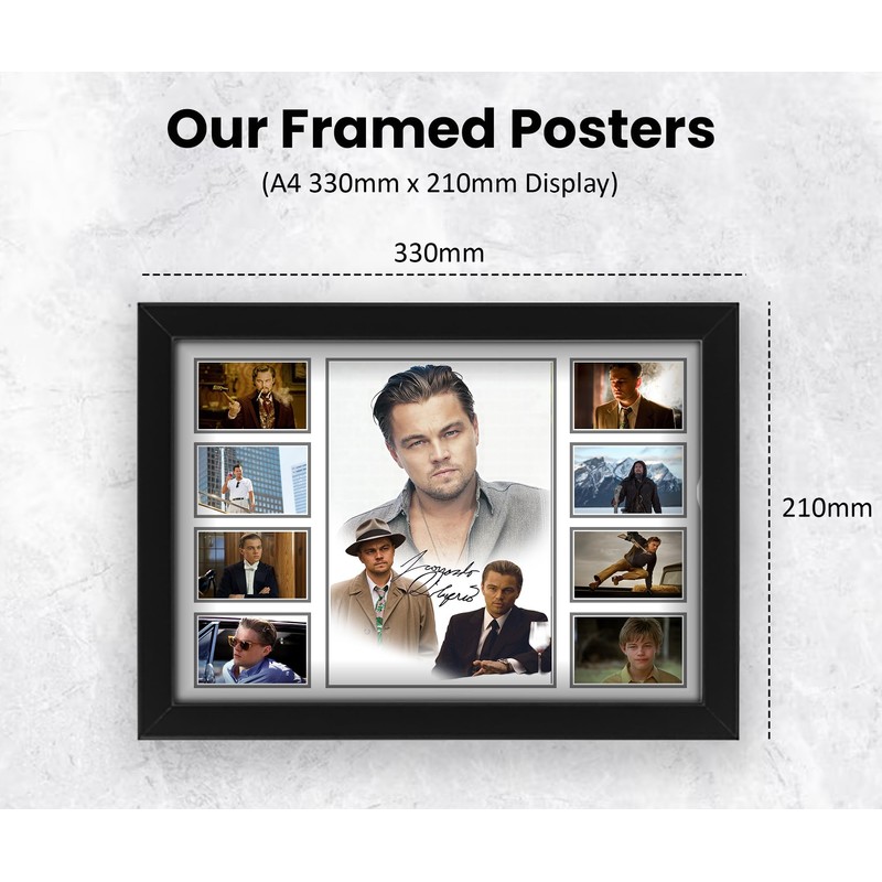 Leonardo Dicaprio Signierter Posterdruck, limitierte Auflage, Autogramm, Fangeschenk, Sammlerstück, Wandkunst, Merchandise (gerahmt, A4 (30 x 21 cm)