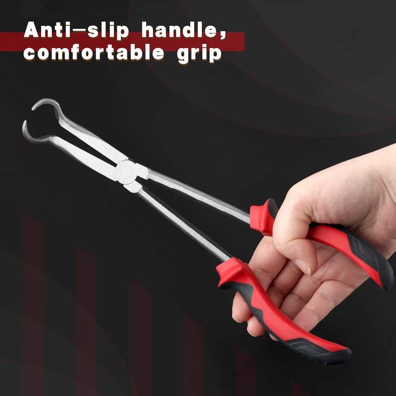 • Applications: Long reach pliers work well in tight spaces that are difficult to reach, and jaws with serrated teeth allow for better gripping and bending of objects. It is used to remove the spark plug high voltage wire, which is convenient and labor-saving. It can also be used in small spaces.