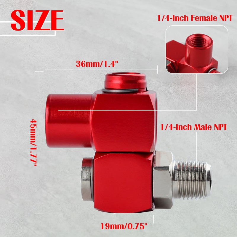 These swivel air fittings from LEONTOOL allow flexible air hose connections. Made of aluminum, each fitting features 1/4" NPT male and female threads for easy installation on pneumatic tools and equipment. Their swivel design provides 360 degrees of rotation, eliminating twisting and tangling of air hoses. Suitable for air supply pressures up to 150 PSI, they ensure a secure connection. The dual pack includes one male and one female fitting for connecting multiple air lines. These fittings minimize stress on hoses while delivering reliable air flow. An essential addition to any workshop using pneumatic tools, they help streamline compressed air distribution systems.