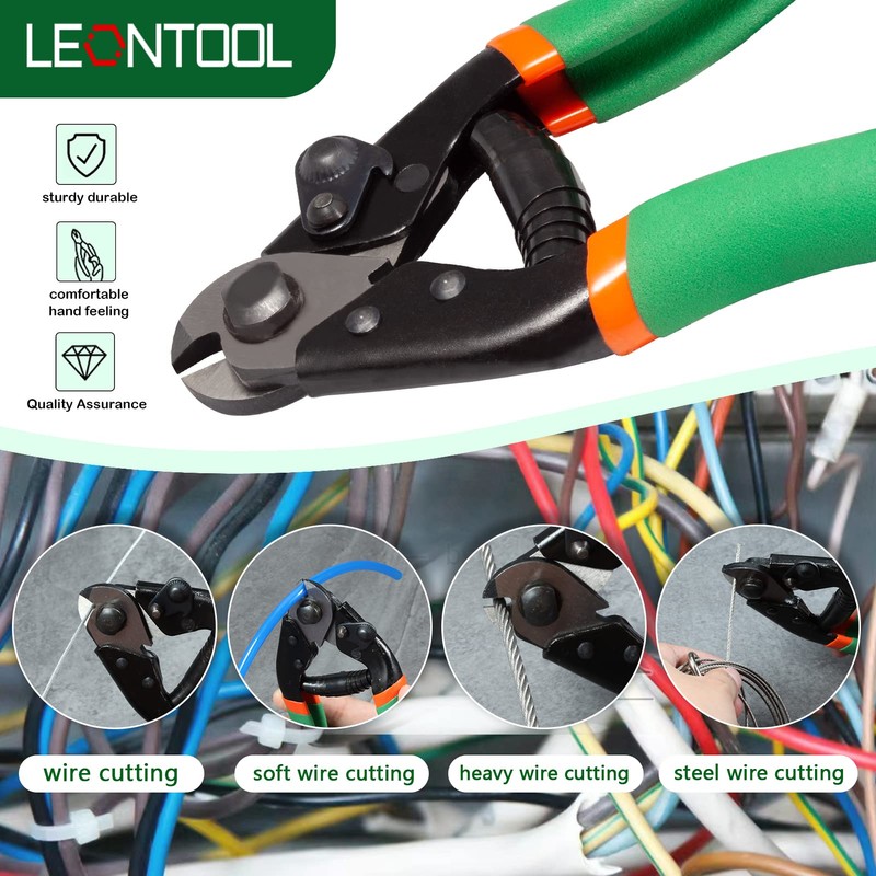 LEONTOOL Steel Wire Cutters 7.5 Inches Wire Rope Cutters Bicycle Cable Cutter Cable Cutting Pliers Bike Brake Cutter Cable Wire Cutters for Metal Fence Ratchet Aircraft Cable