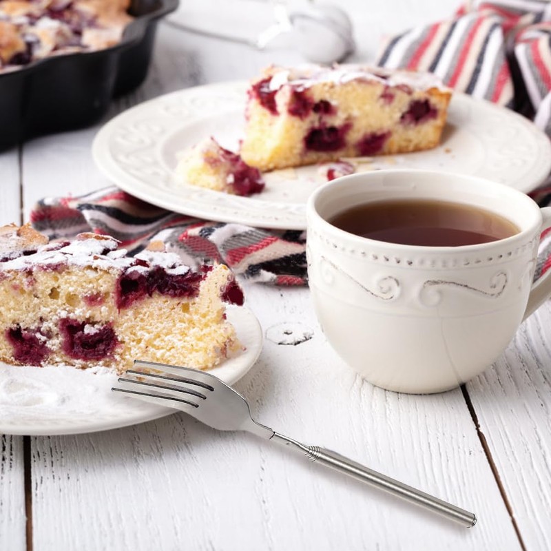 • Versatile Dining Companion:Elevate your dining experience with the stainless steel dinner fork, this telescopic, extendable fork isn't just for dinner, it's your go to utensil for BBQ, fruit platters, desserts, and more, stainless steel telescopic fork versatility ensures it's not just a utensil but a multifunctional tool for various culinary needs. Long handle fork cutlery set is widely used