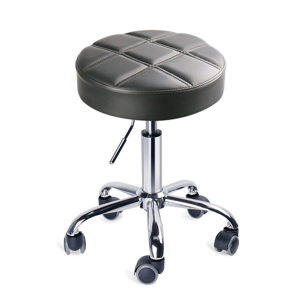 Leopard Round Rolling Stools, Adjustable Work Medical Stool with Wheels (Small, Grey)