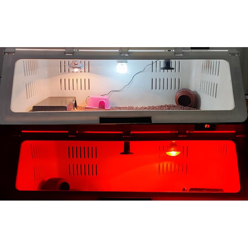 - *Gives Off No Light .Ceramic Heat emitter Does Not Emit Any Visually Detectable Light ,No Disturb The Sleep Cycle Of Your Pets ,It is a 24 Hours Heat Lamp