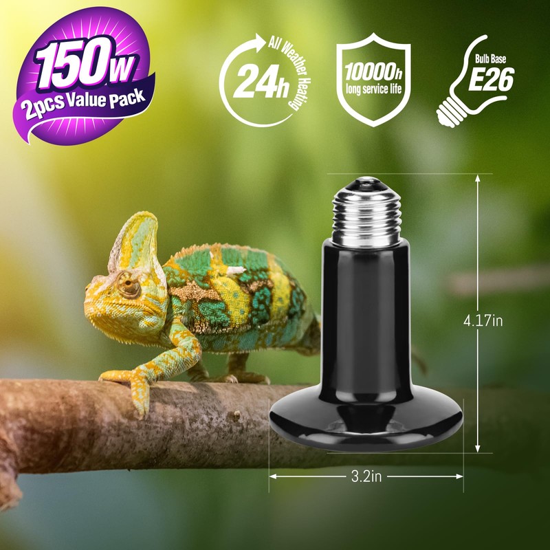 Leoterra 150w Ceramic Heat Emitter, Ceramic Heat Lamp Bulbs for Reptiles, Reptile Tank,Hedgehogs Chicken coop Heater,Dog,Cat,Strong Durable and Powerful,Gives Off No Light(150w 2-Pack)
