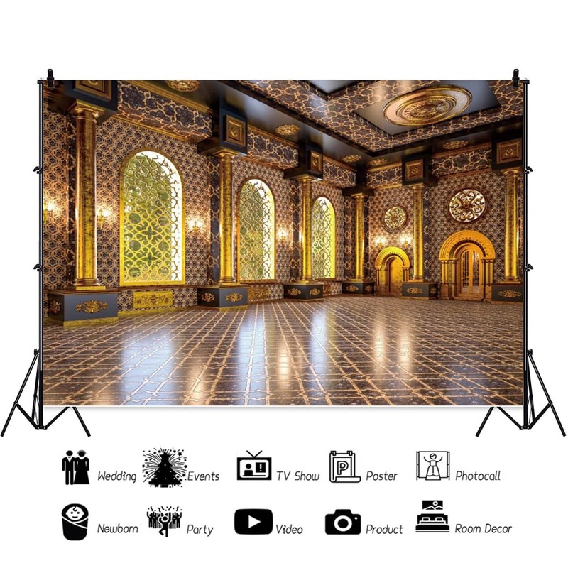 Leowefowa 10x8ft Luxurious Palace Backdrop Retro European Hall Royal Interior Golden Hall Background Gold Noble Castle Wedding Birthday Party Banner Decor Photo Supplies Prop