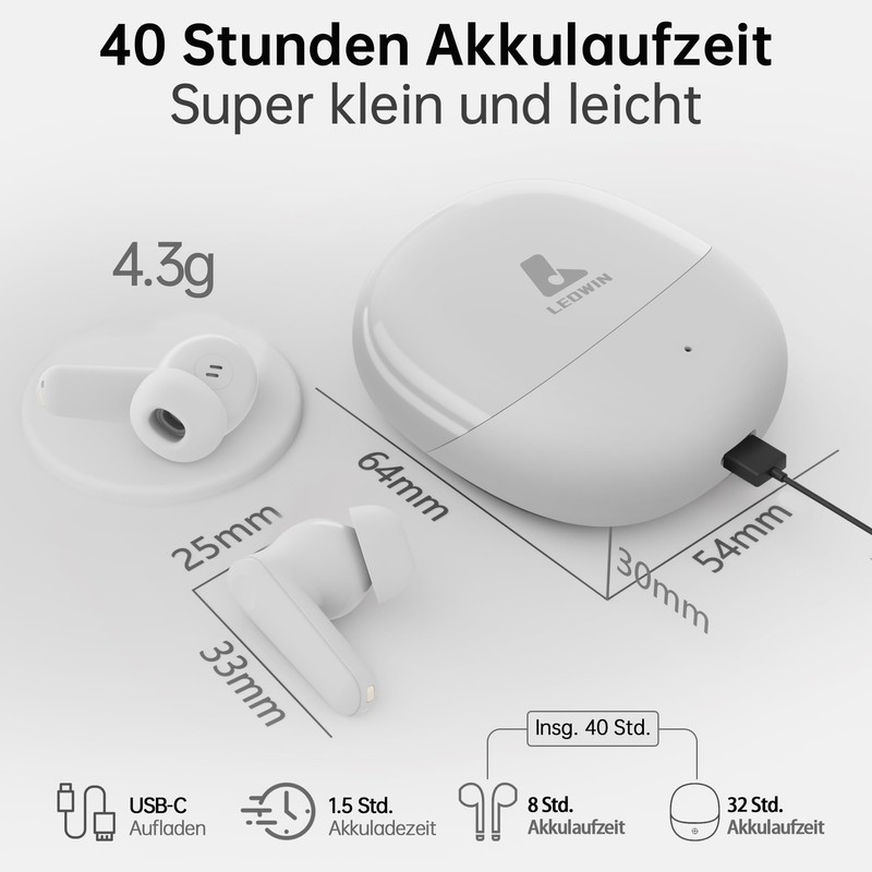Leowin Bluetooth Kopfhörer, in Ear Kopfhörer Bluetooth, Kopfhörer Kabellos Bluetooth 5.3 mit 4 Mikofonen für klare Anrufe, ENC ANC Noise Cancelling und Transparenter Modus,40 Std. Akkulaufzeit