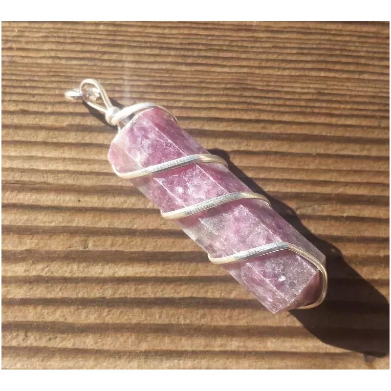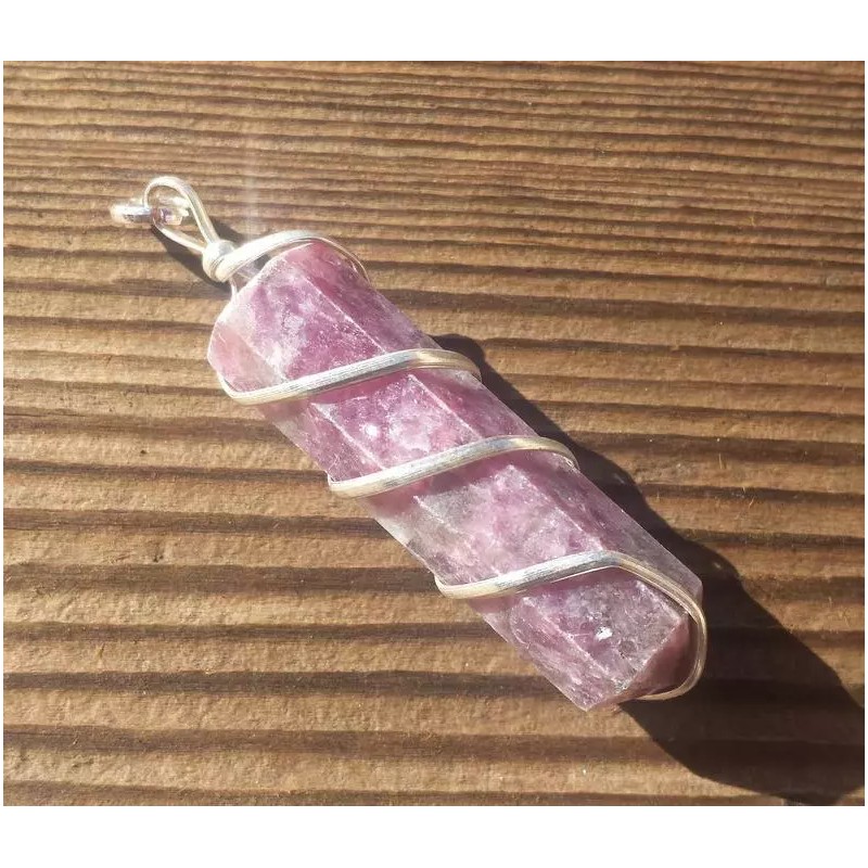 LEPIDOLITE SPIRAL WIRE WRAPPED PENCIL POINT PENDANT GEMSTONE