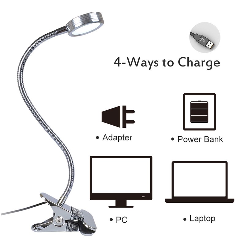 - A 2-prong USB AC adapter and 5 feet cord are provided to support the clip on light. FCC listed quality saves your worry. Can be used with normal 110V household current.