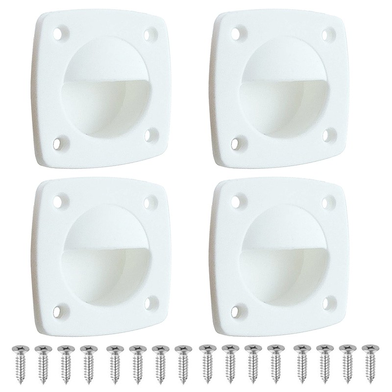 LEQMG White Nylon Flush Pull Recessed Sliding Door Handle Square Hatch Pull Handle,Yacht, Motorboat and Boat Cabin Accessories(4 Pcs)