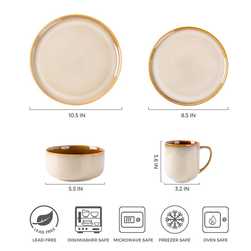 LERATIO Ceramic Dinnerware Sets for 4,16-PieceReactive Glaze Plates and Bowls Set with Mugs,Highly Chip and Crack Resistant | Dishwasher,Microwave & Oven Safe Dishes set-Kahki